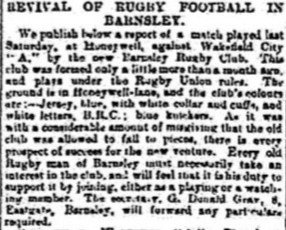 On the 10th of January 1903 the Barnsley Chronicle newspaper announced that rugby had returned to Barnsley.