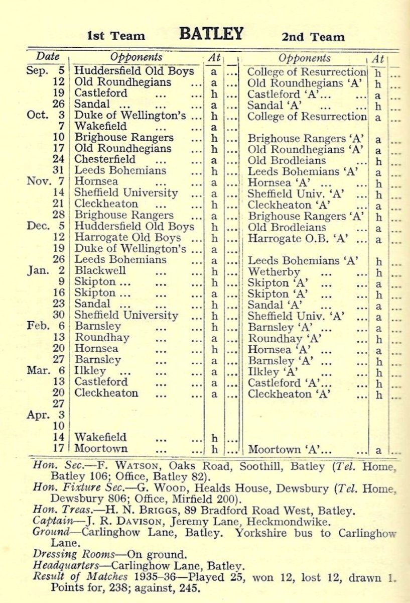 Batley rugby union club was based in a town that had a strong rugby league tradition. The Batley rugby league club was one of the founding members of the Northern Union and had won the Challenge Cup three times, 1896/97, 1897/98 and 1900/01. However, despite the competition from rugby league the Batley rugby union club was able to field two teams every week and had a fixture list that included well established and successful clubs. Huddersfield Old Boys, Cleckheaton, Ilkley and Wakefield all featured regularly in the fixture list. Batley also had its own ground on Carlinghow Lane, just a mile from the town centre.