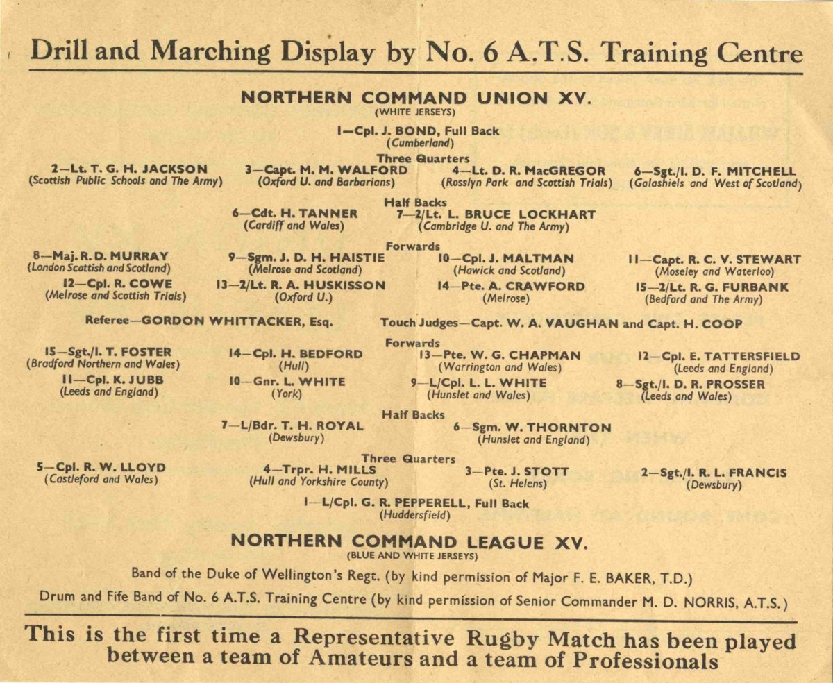 On the 23rd of January 1943 at Headingley, the home of Leeds rugby league club, a rugby union game was organised by the Northern Command Sports Board between a Rugby League XV and a Rugby Union XV.