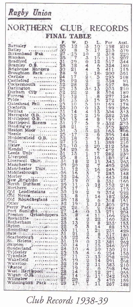 When you flick through the County handbooks for the 1930s you get a picture of a sport that had recovered from the terrible impact of World War One and was thriving. The 1930s had begun with one hundred Yorkshire clubs playing regular fixtures. By the end of the decade the number of clubs hadn't increased, but participation in rugby union had. Most of the clubs in Yorkshire were able to field two or more teams every Saturday.